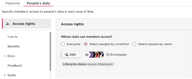 2. Create a new permission group ([Docs from HiBob here](https://help.hibob.com/hc/en-us/articles/4409776408209))