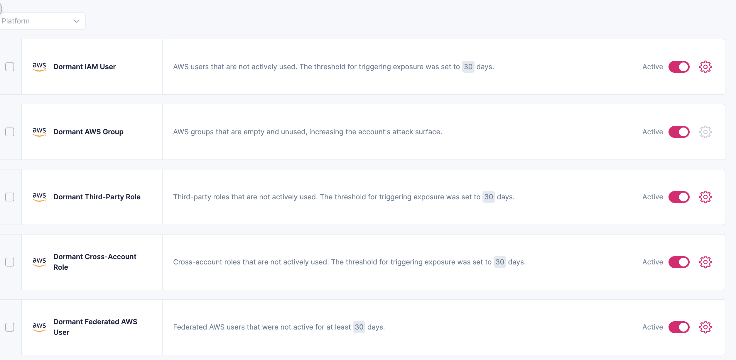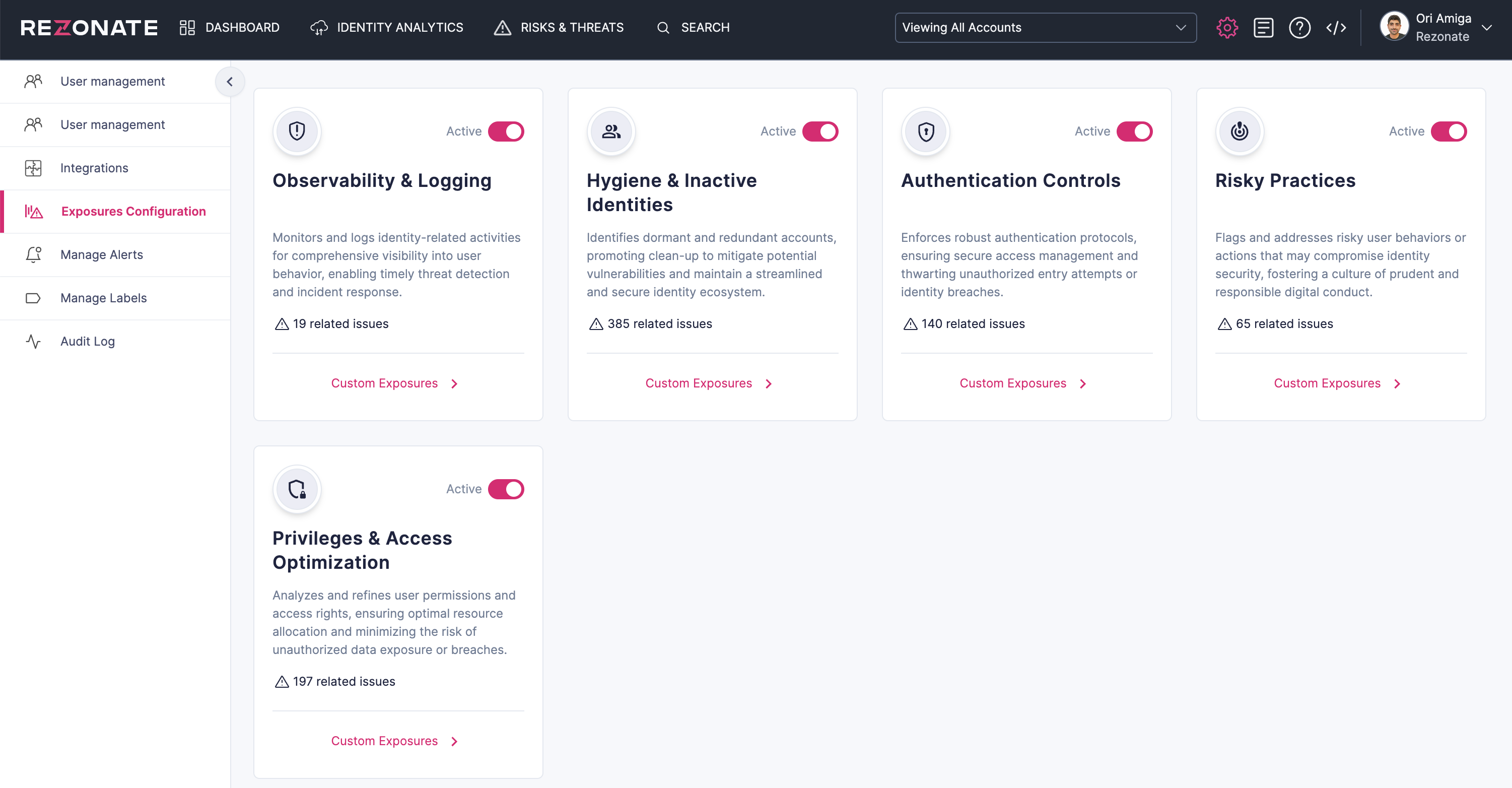 **Exposures Configuration** lets users customize security controls to be monitored.&#x20;
