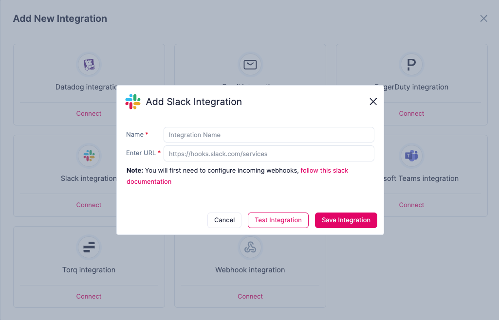For the integration, you will need an Incoming Webhook receiver in Slack. information regarding the process can be found on [Slack documentation](https://api.slack.com/messaging/webhooks).  After performing the steps as described in their documentation, please keep note of the **Webhook URL**.