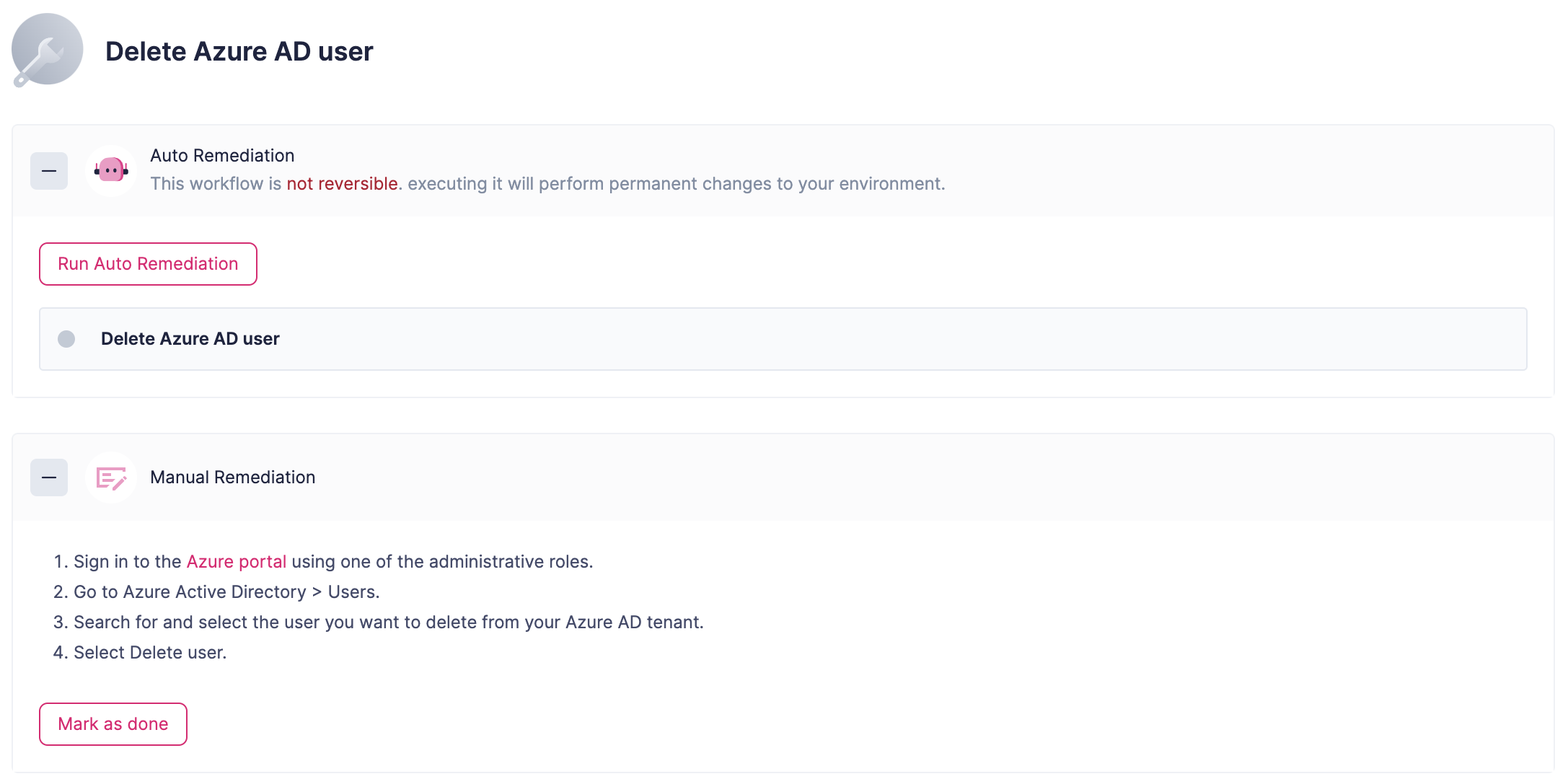 By Clicking an issue, we can see the full information, including its Identity storyline as well as potential remediations (that can be applied automatically from Rezonate or externally)